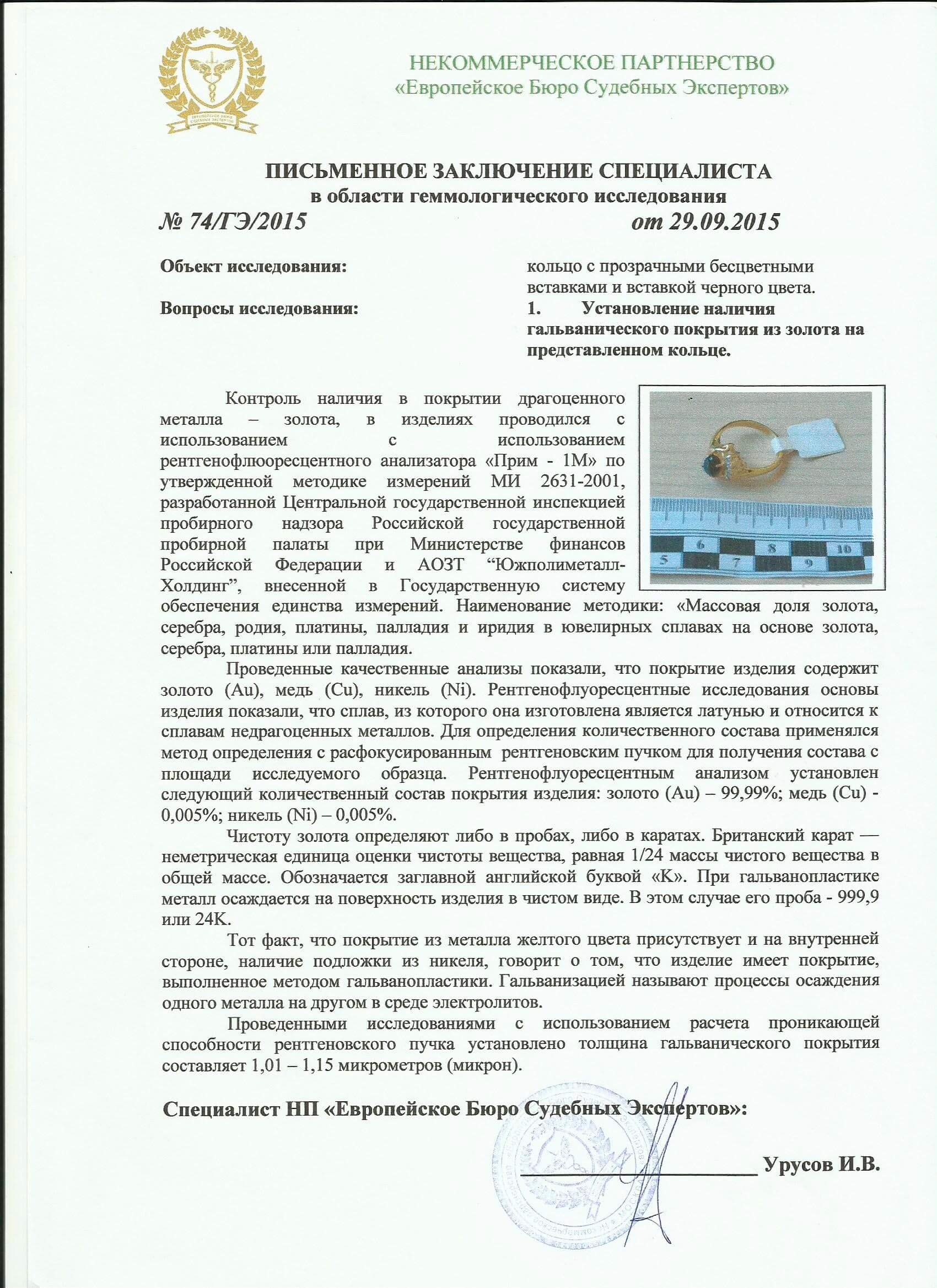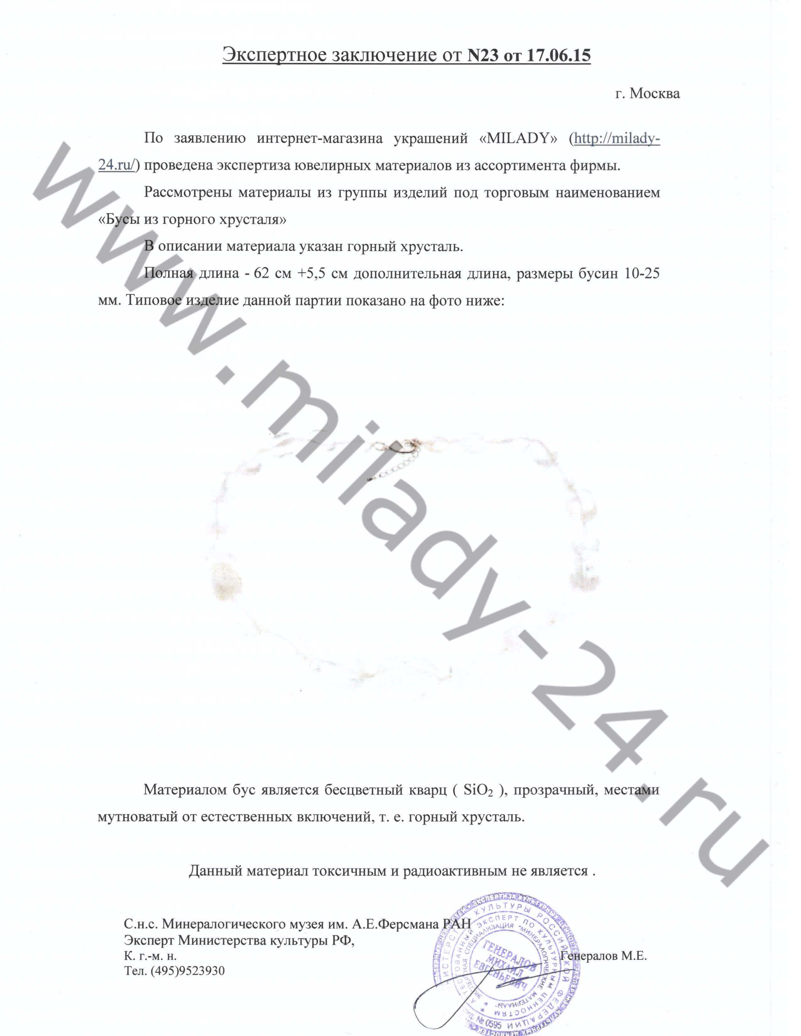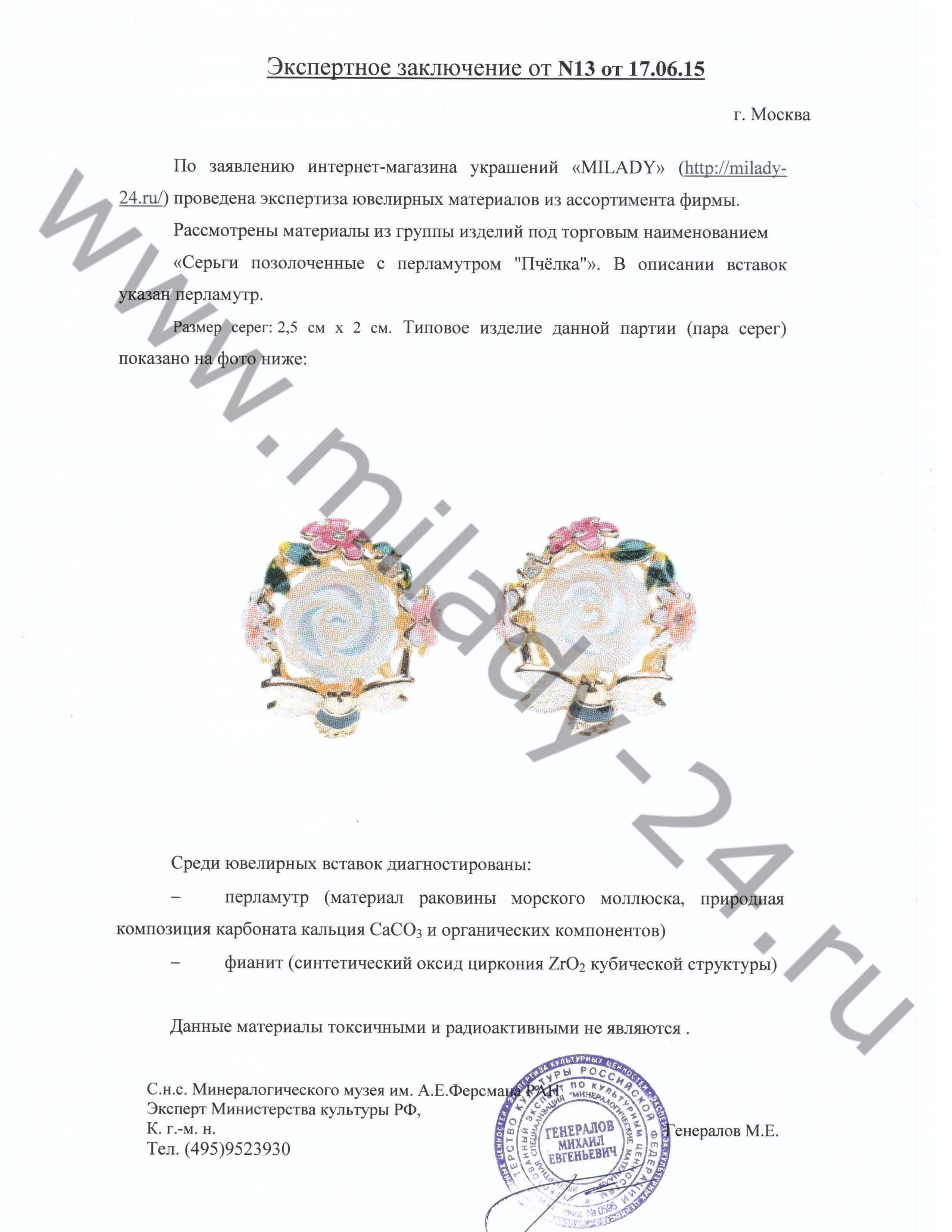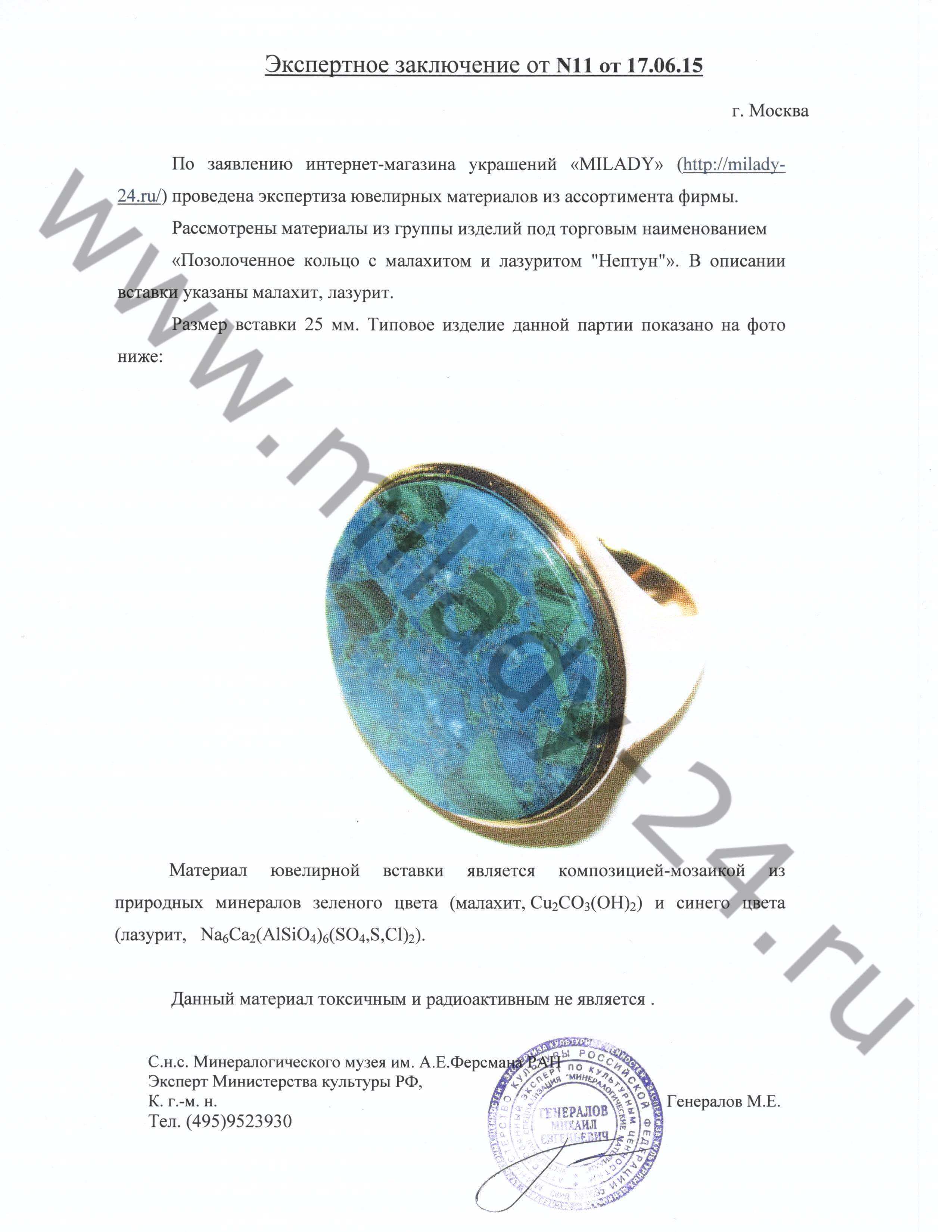Вы можете не сомневаться в том, что приобретаете настоящее украшение с камнем. Посмотрите независимые заключения экспертов-геммологов.