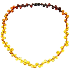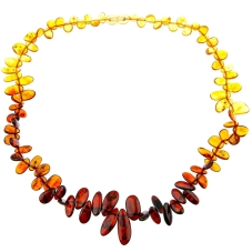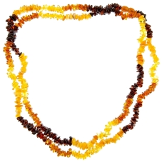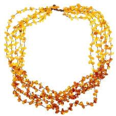 Освежающе и одновременно скромно смотрятся низки солнечного янтаря различной формы.