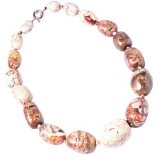 Попадая в руки талантливых мастеров, яшма становится еще великолепнее. Ее неподражаемый рисунок делает каждое украшение уникальным и не похожим ни на одно другое. Очень интересно и необычно смотрятся бусы и колье с яшмой. Это стильные и во все времена актуальные украшения, которые подходят всем без исключения, а благодаря многообразию дизайнерских решений, их без труда можно подобрать к ансамблям любых стилей. Наиболее выигрышно бусы с яшмой смотрятся в сочетании с нарядами этнического, фольклорного и ретро стиля. Впрочем, можно подобрать их и к офисным костюмам и одежде в casual комплектам. Не подойдет яшма разве что к вечерним нарядам.