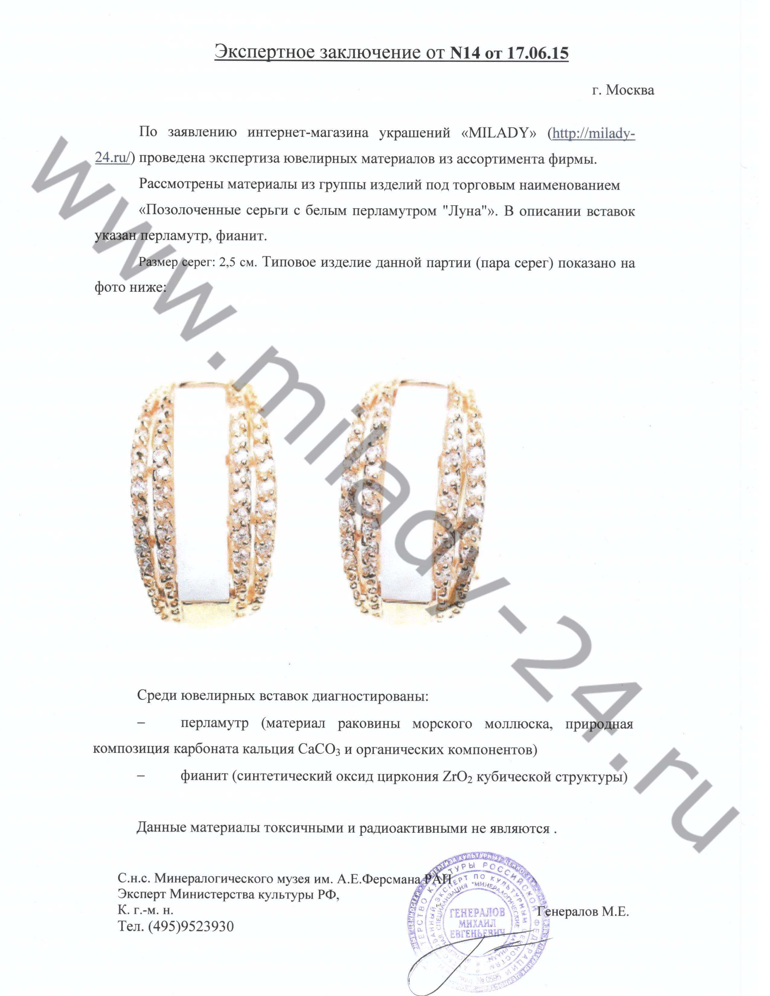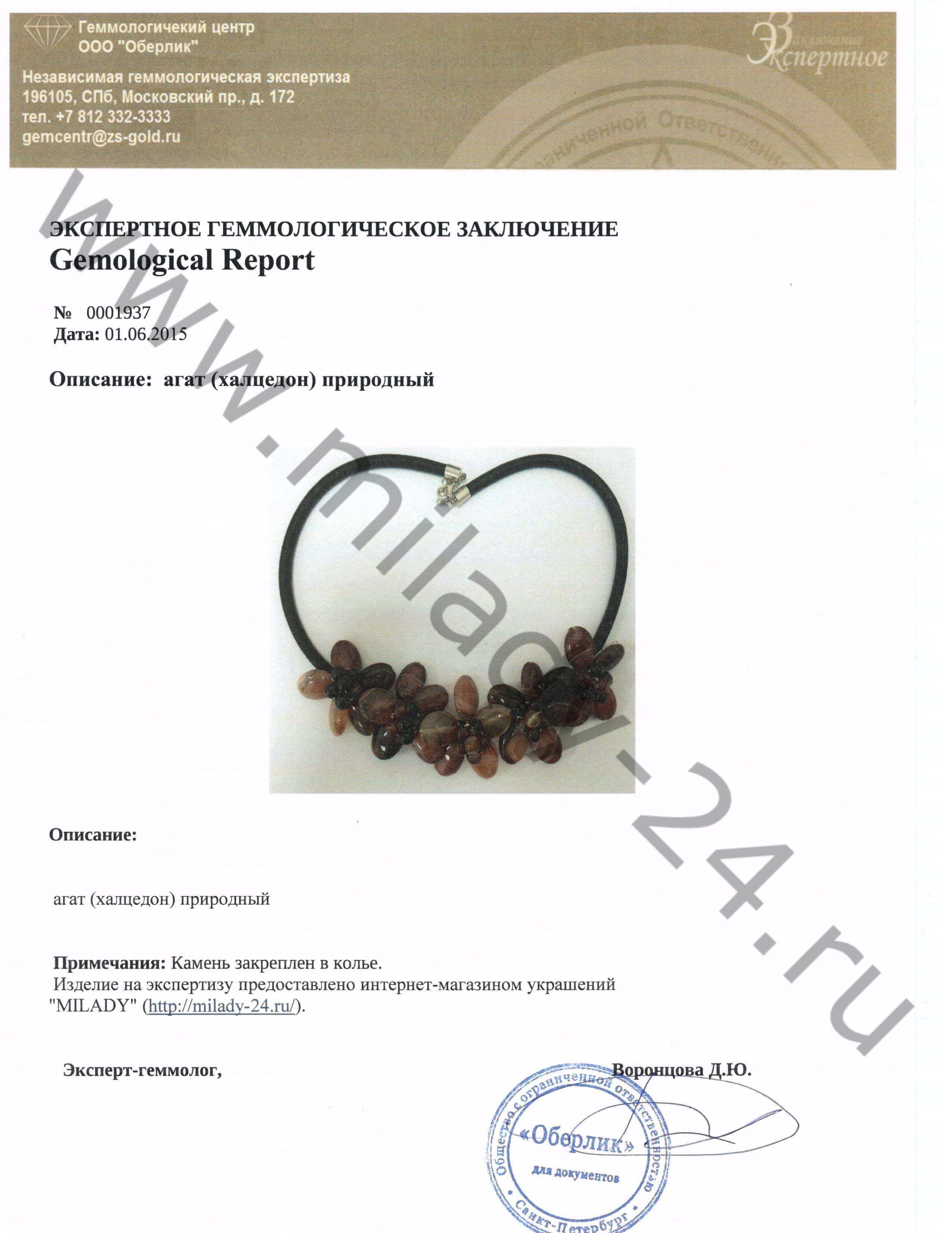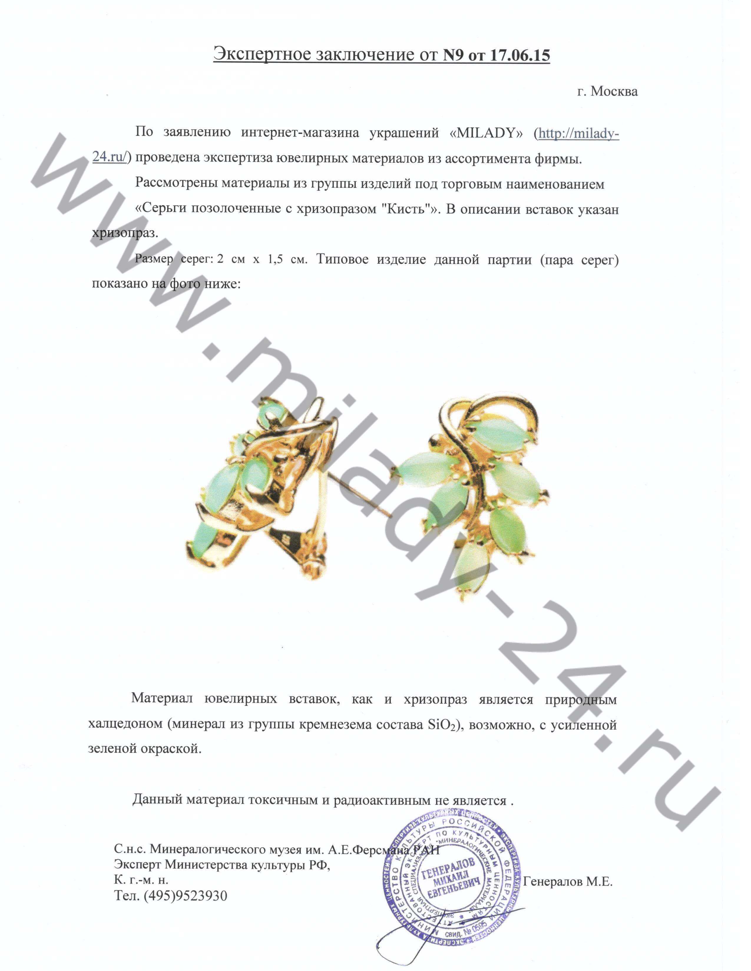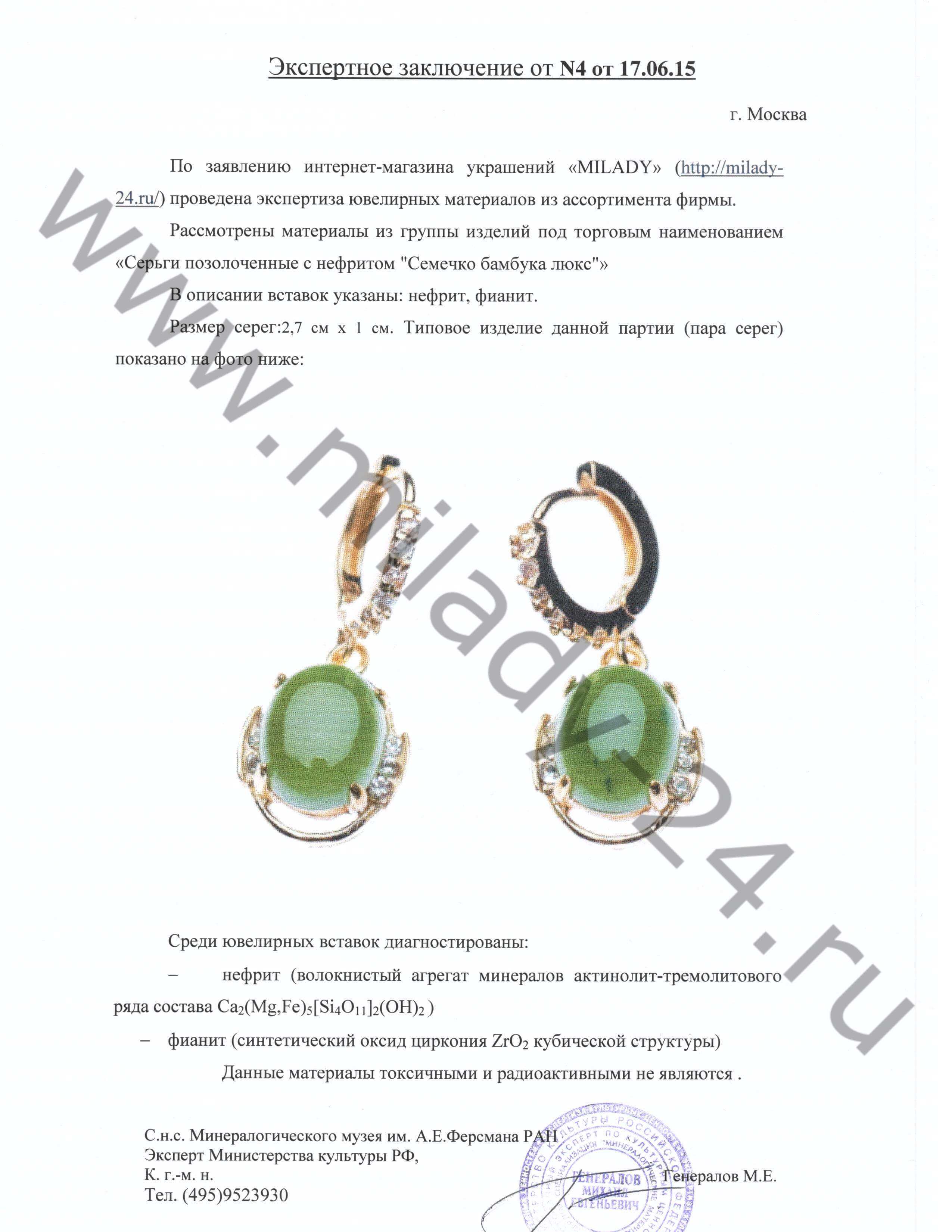 Вы можете не сомневаться в том, что приобретаете настоящее украшение с камнем. Посмотрите независимые заключения экспертов-геммологов.