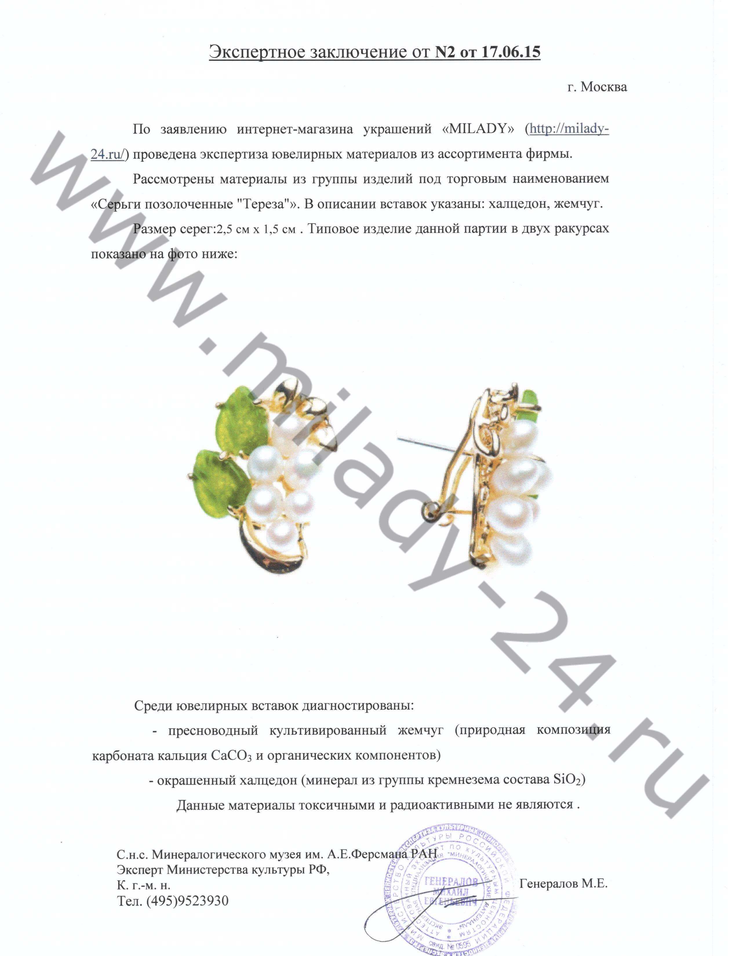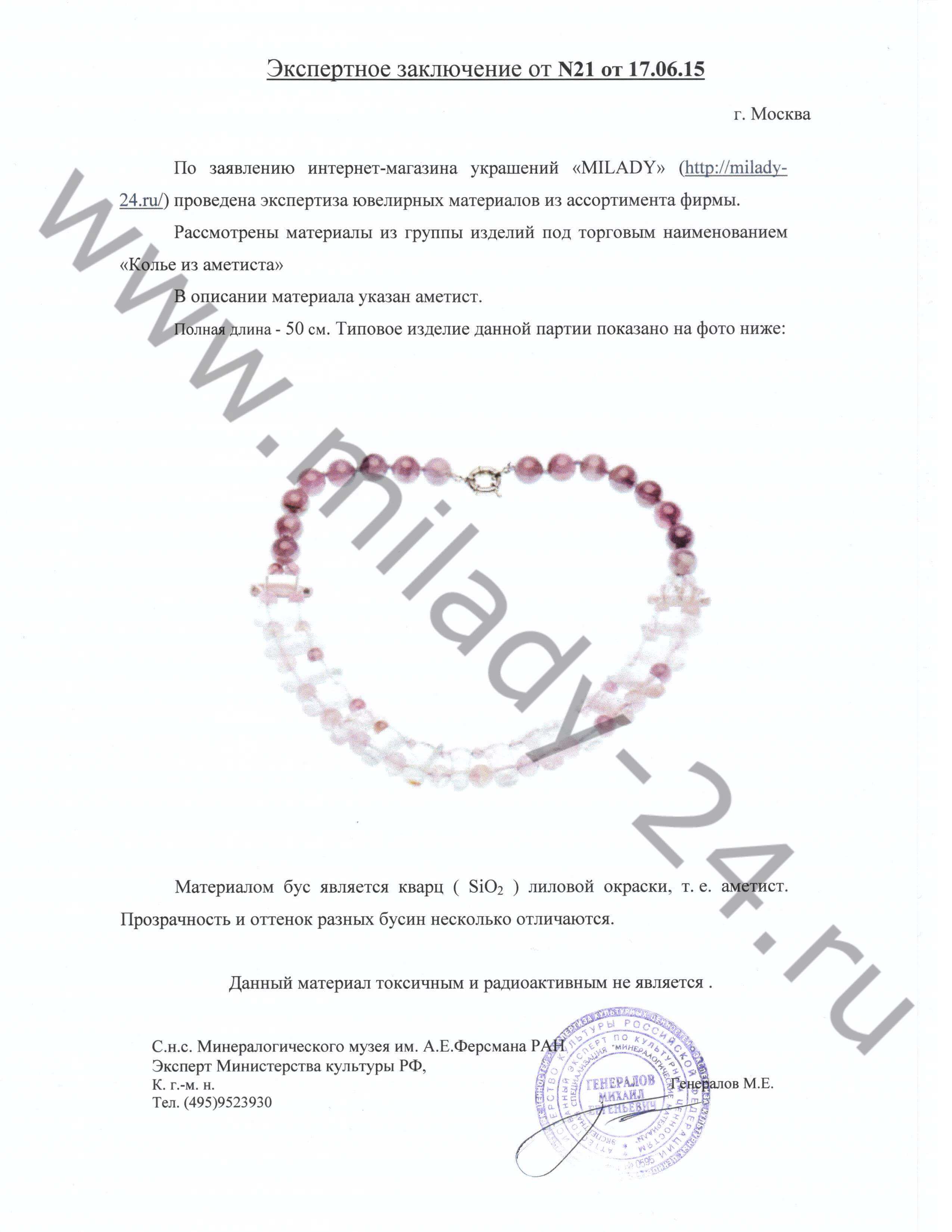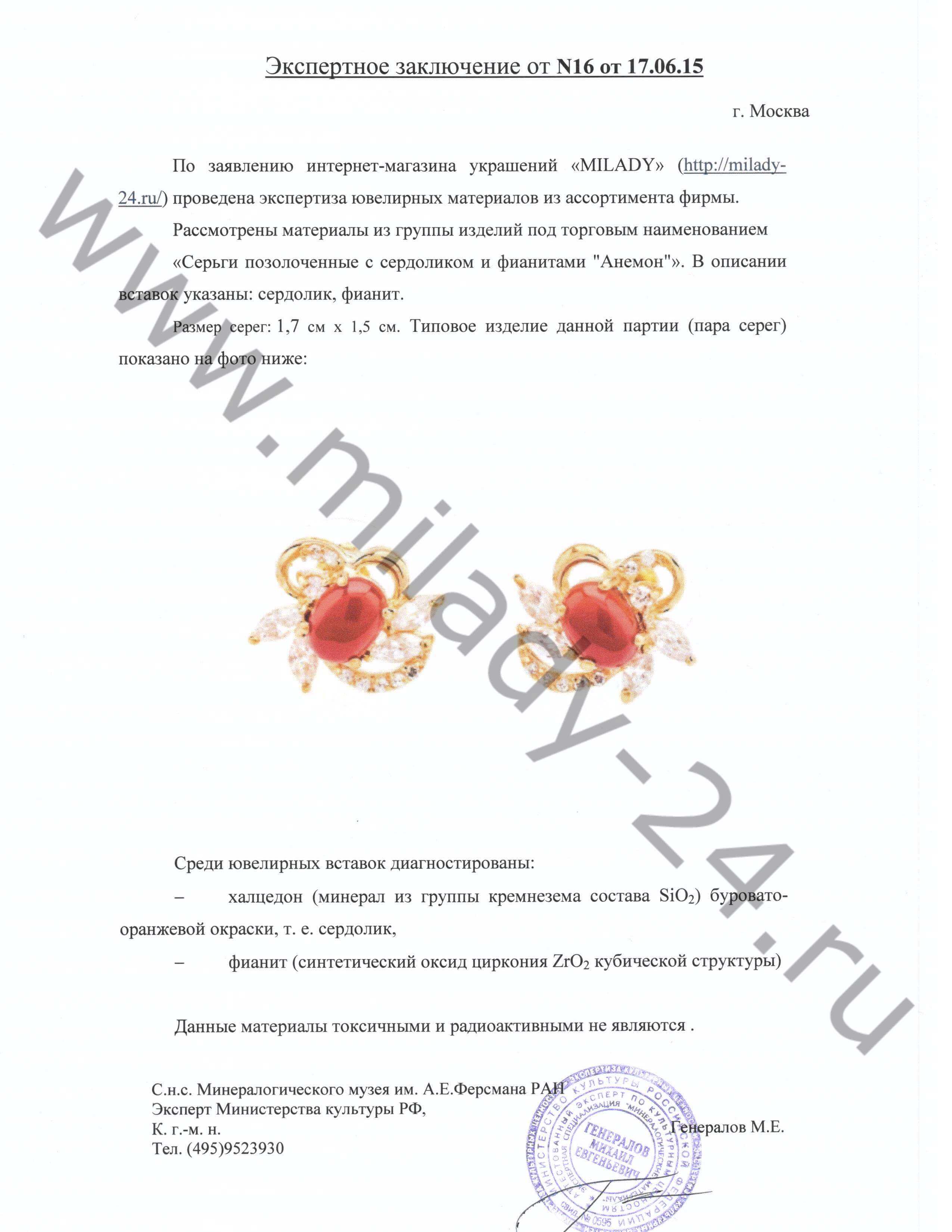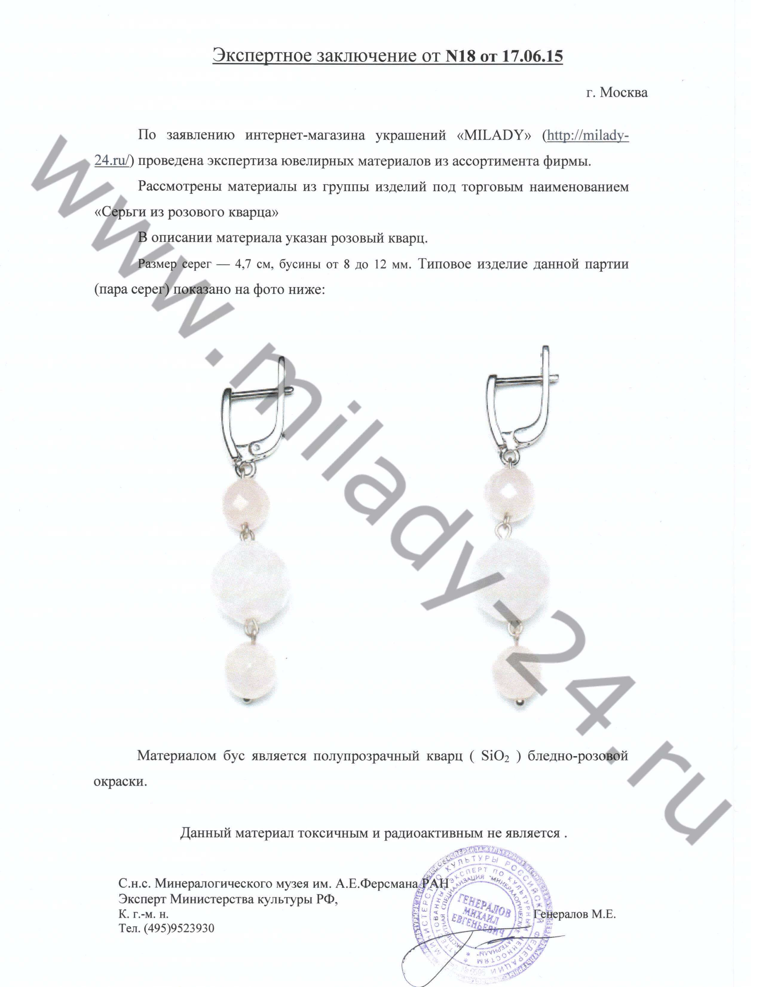 Вы можете не сомневаться в том, что приобретаете настоящее украшение с камнем. Посмотрите независимые заключения экспертов-геммологов.