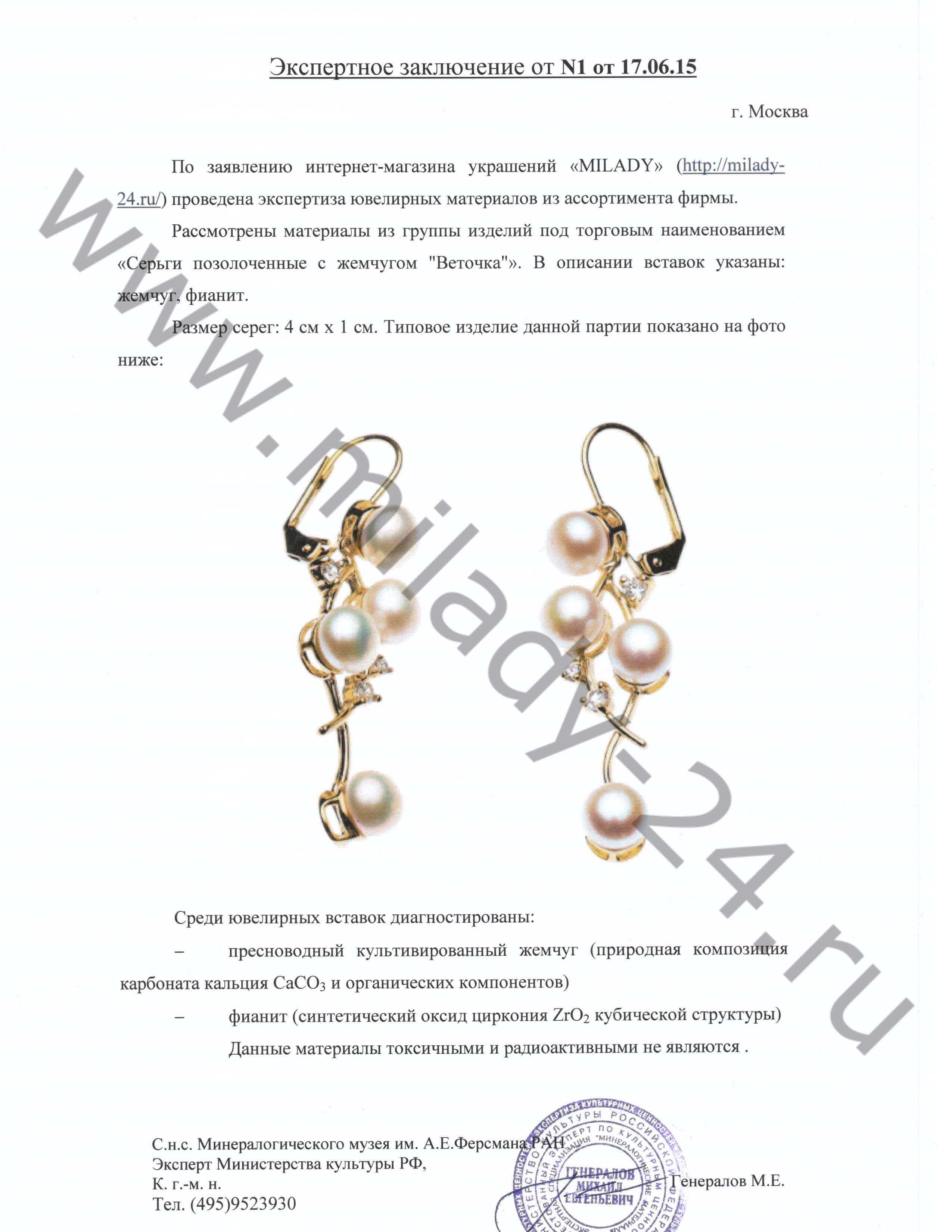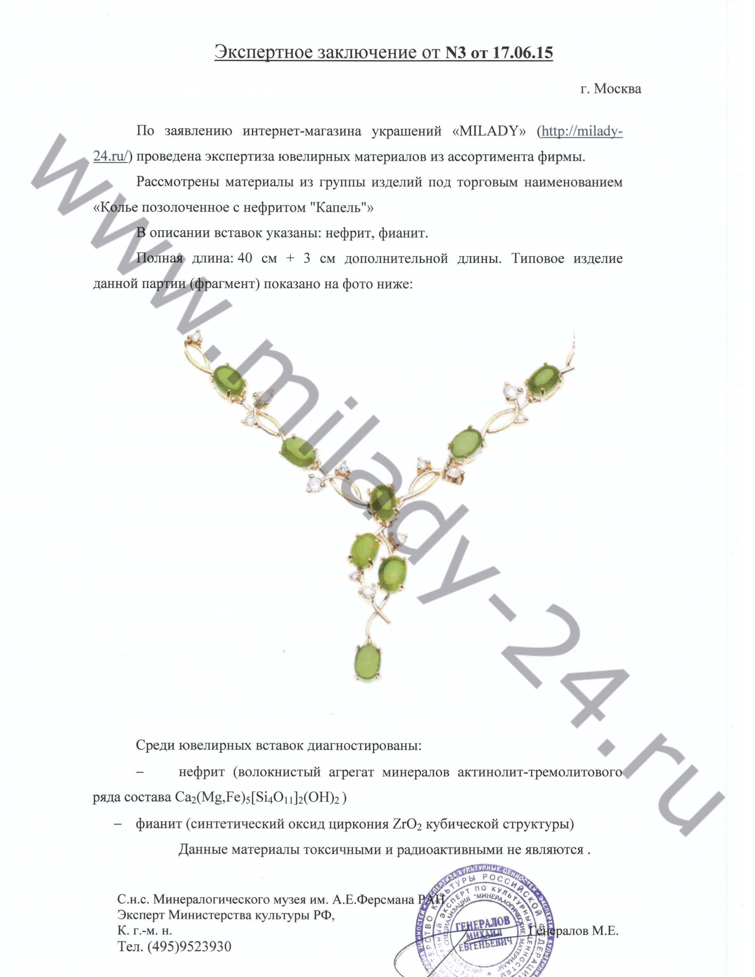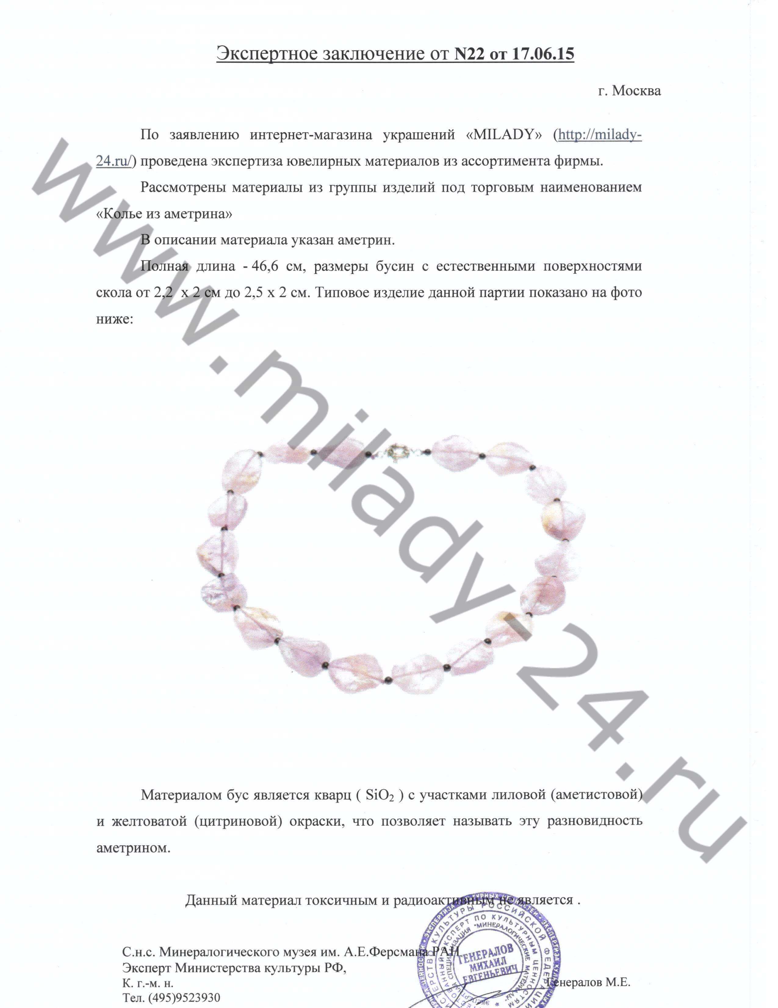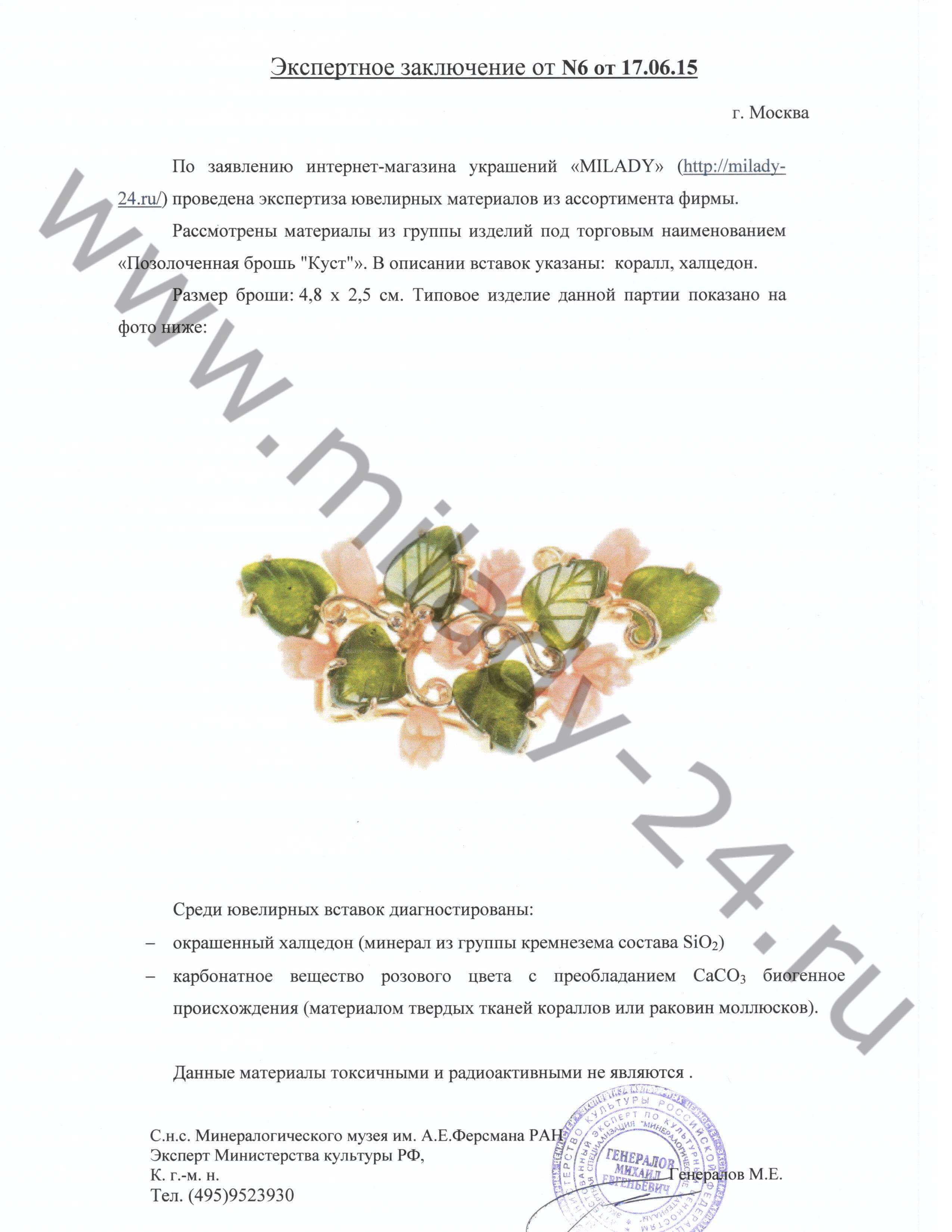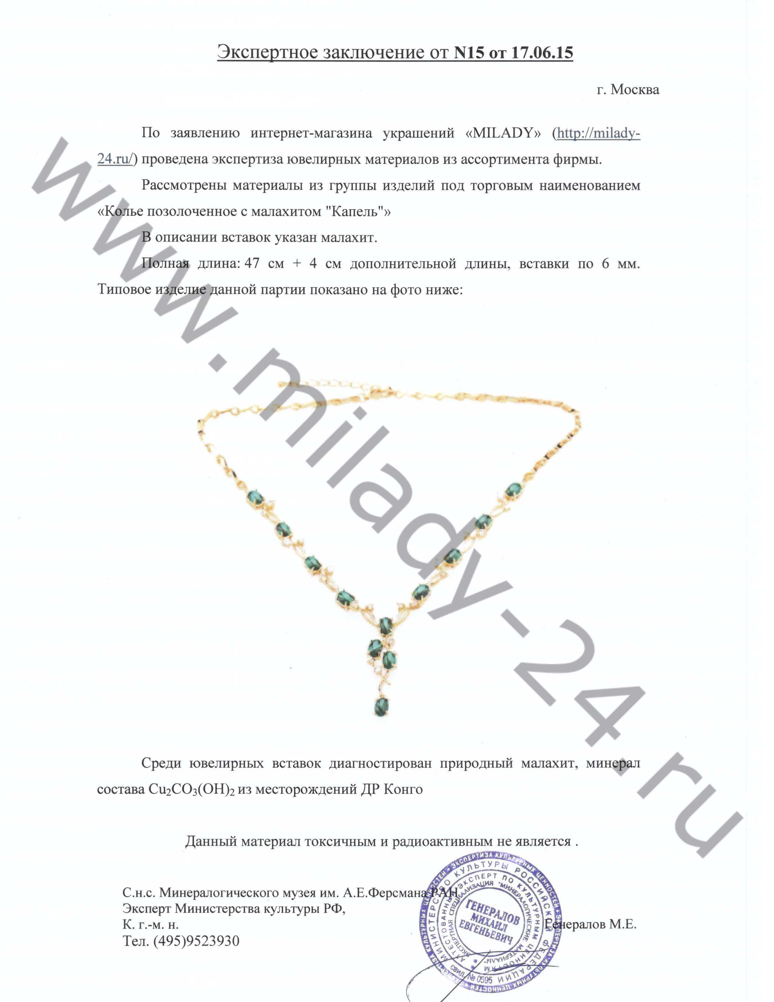 Вы можете не сомневаться в том, что приобретаете настоящее украшение с камнем. Посмотрите независимые заключения экспертов-геммологов.