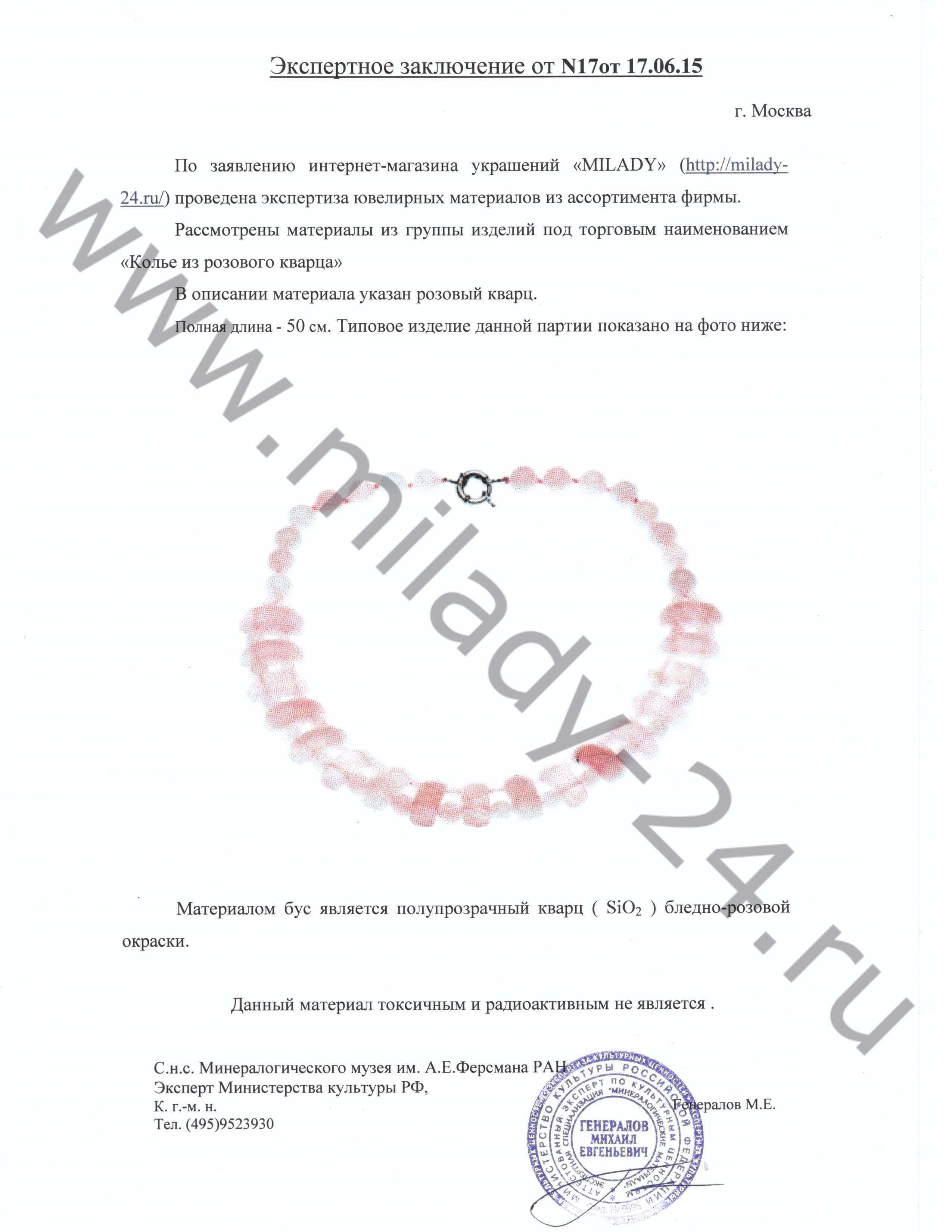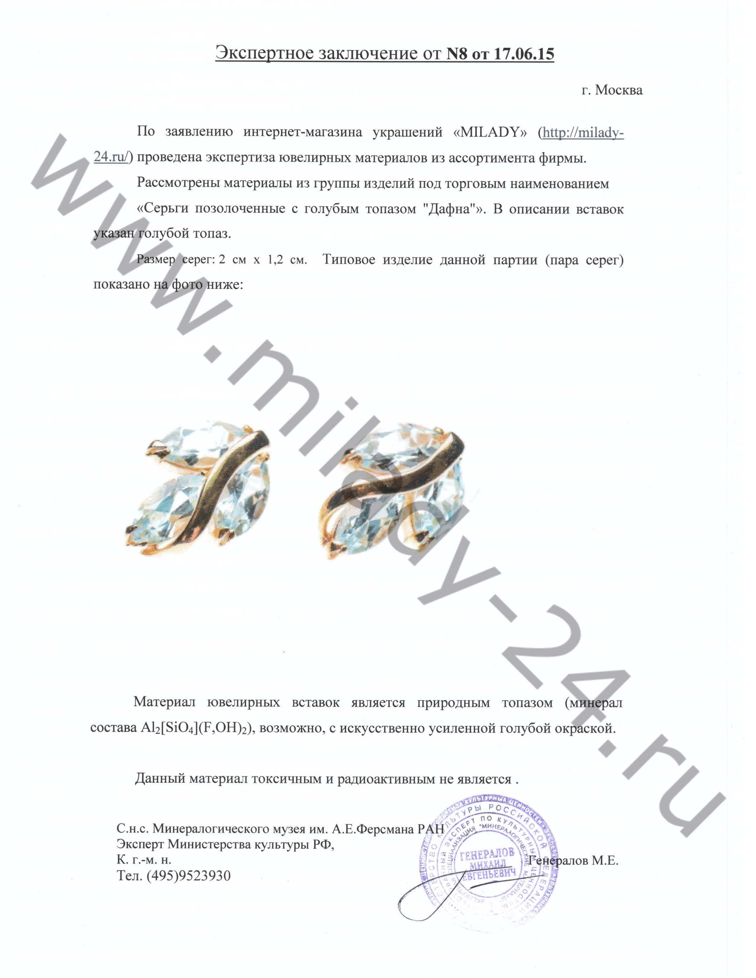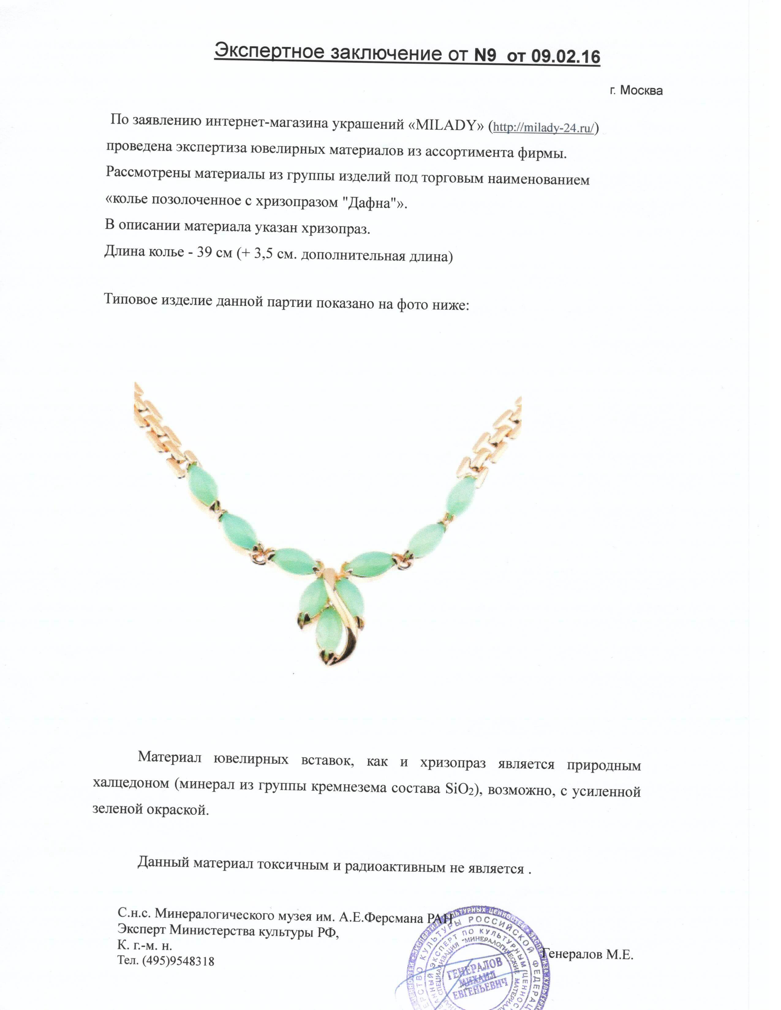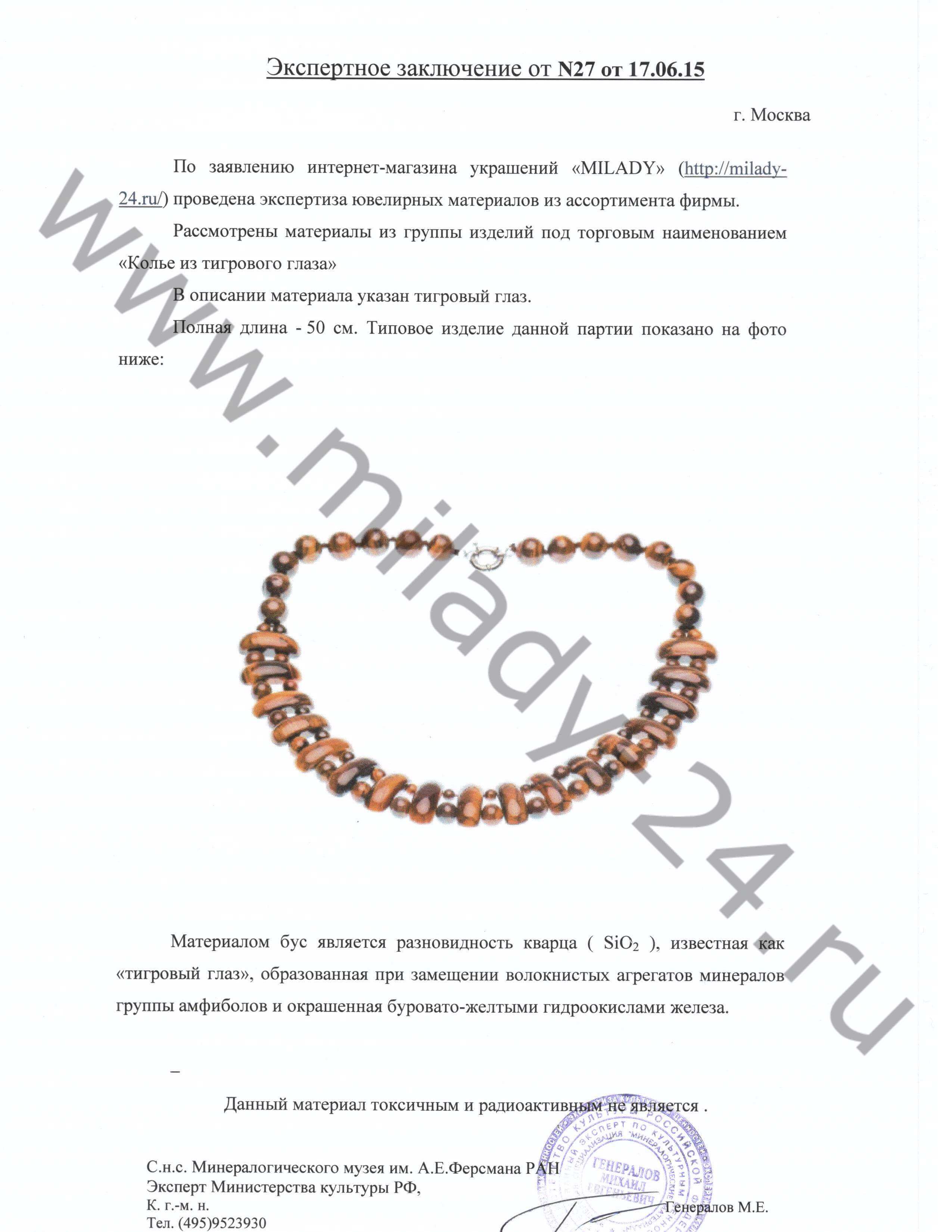 Вы можете не сомневаться в том, что приобретаете настоящее украшение с камнем. Посмотрите независимые заключения экспертов-геммологов.