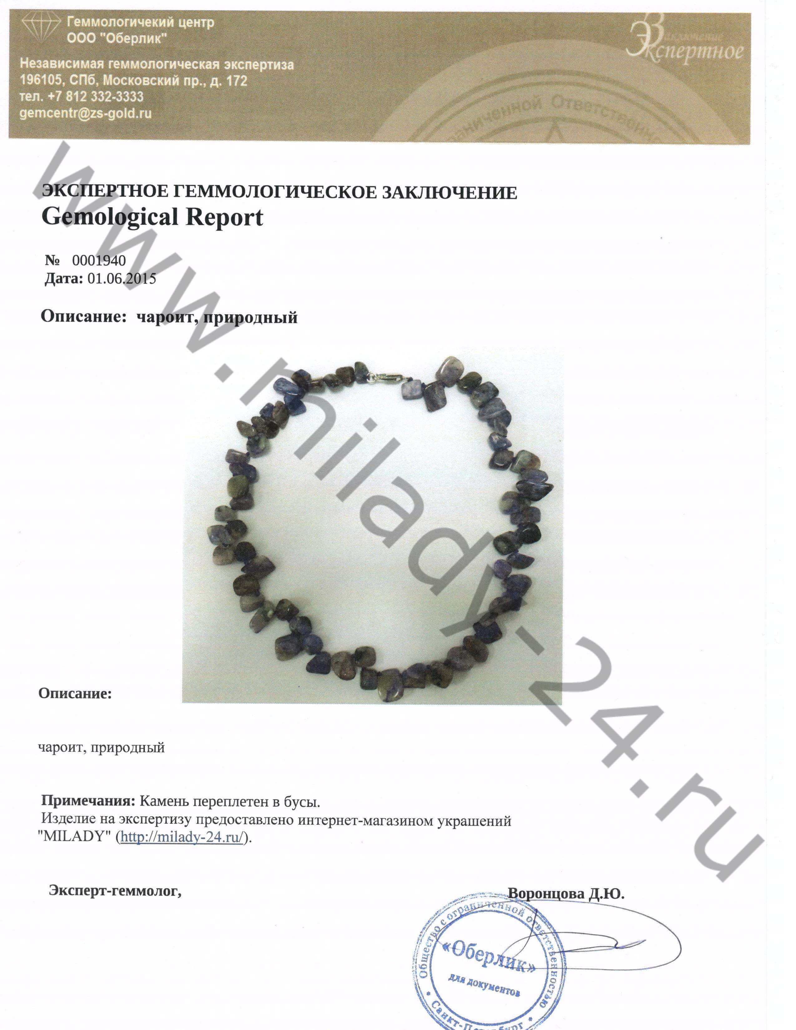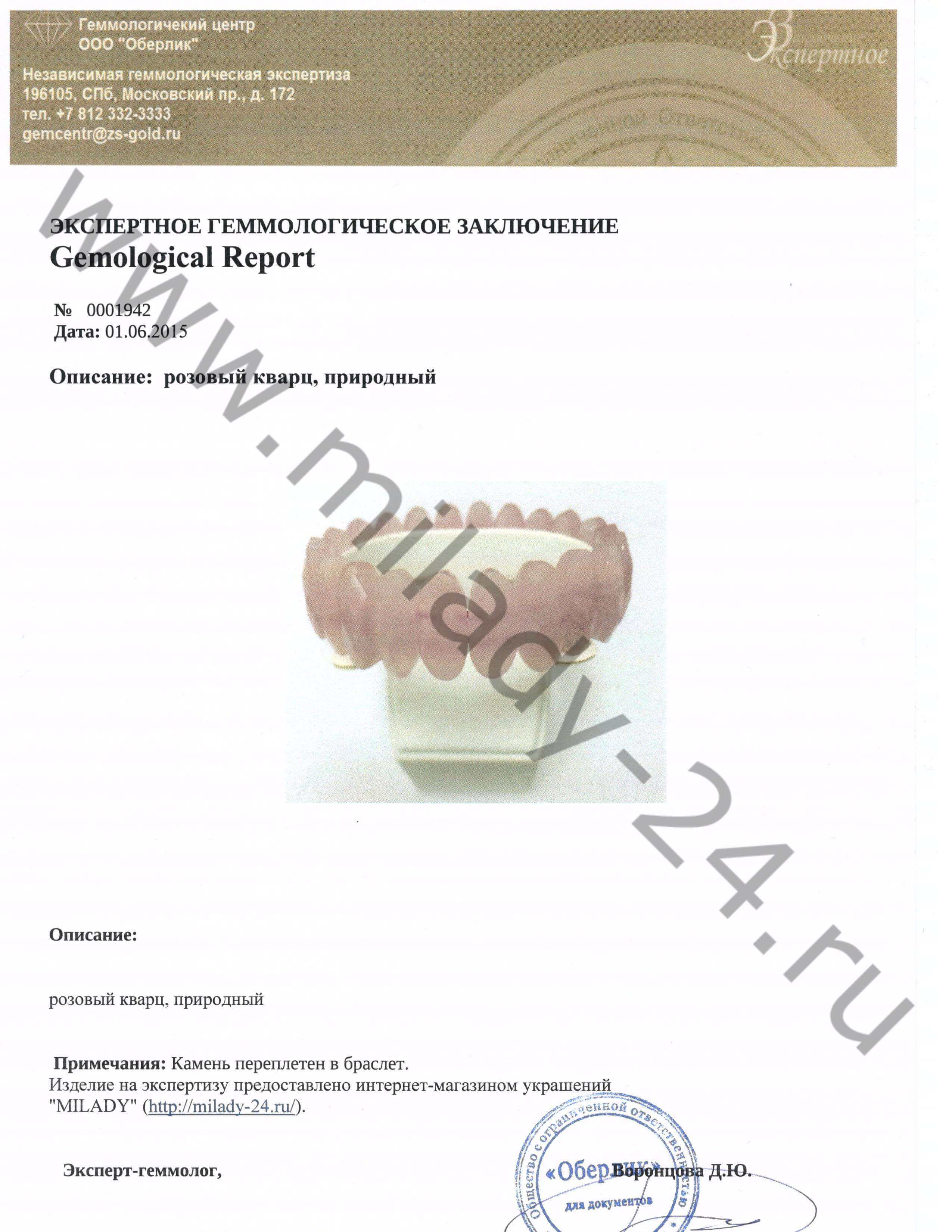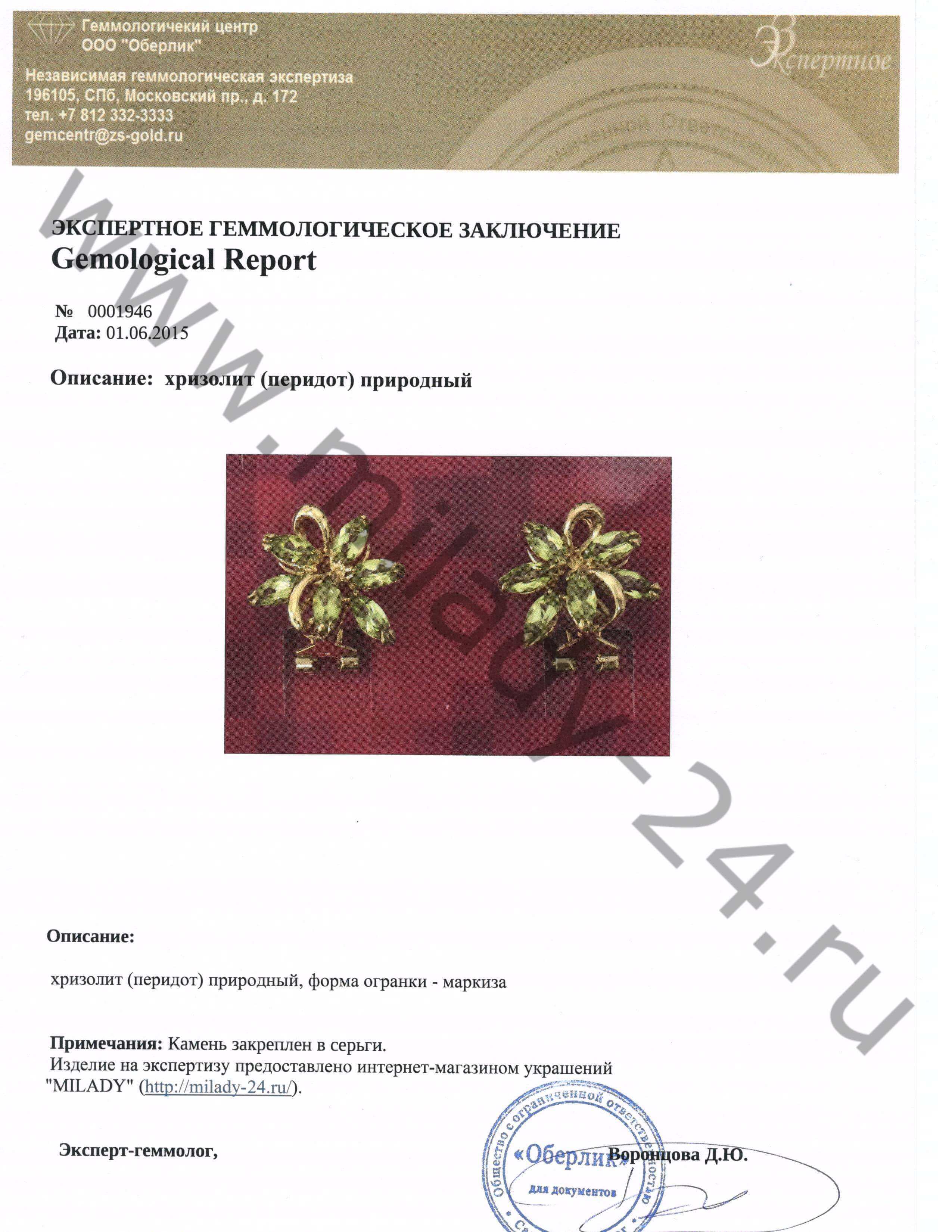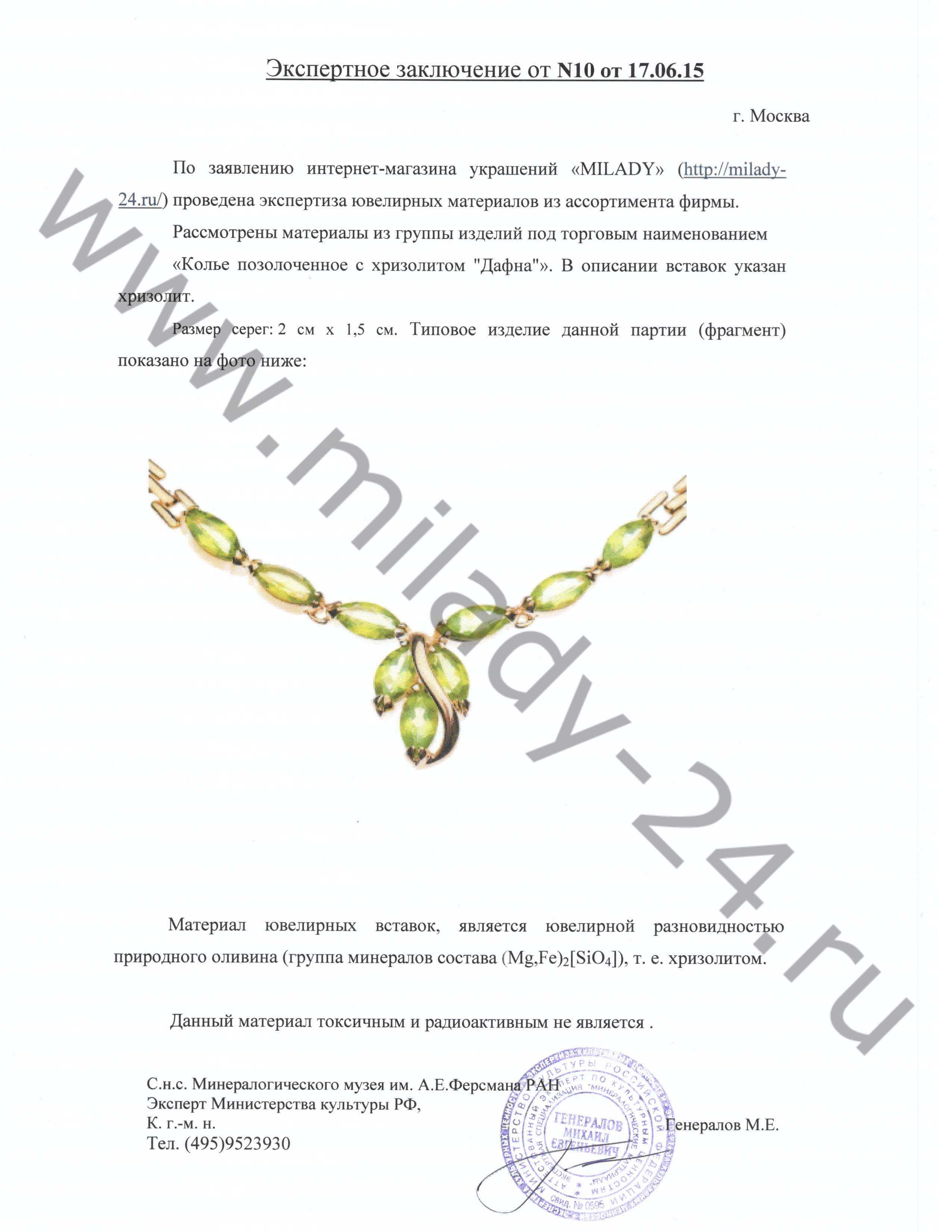 Вы можете не сомневаться в том, что приобретаете настоящее украшение с камнем. Посмотрите независимые заключения экспертов-геммологов.